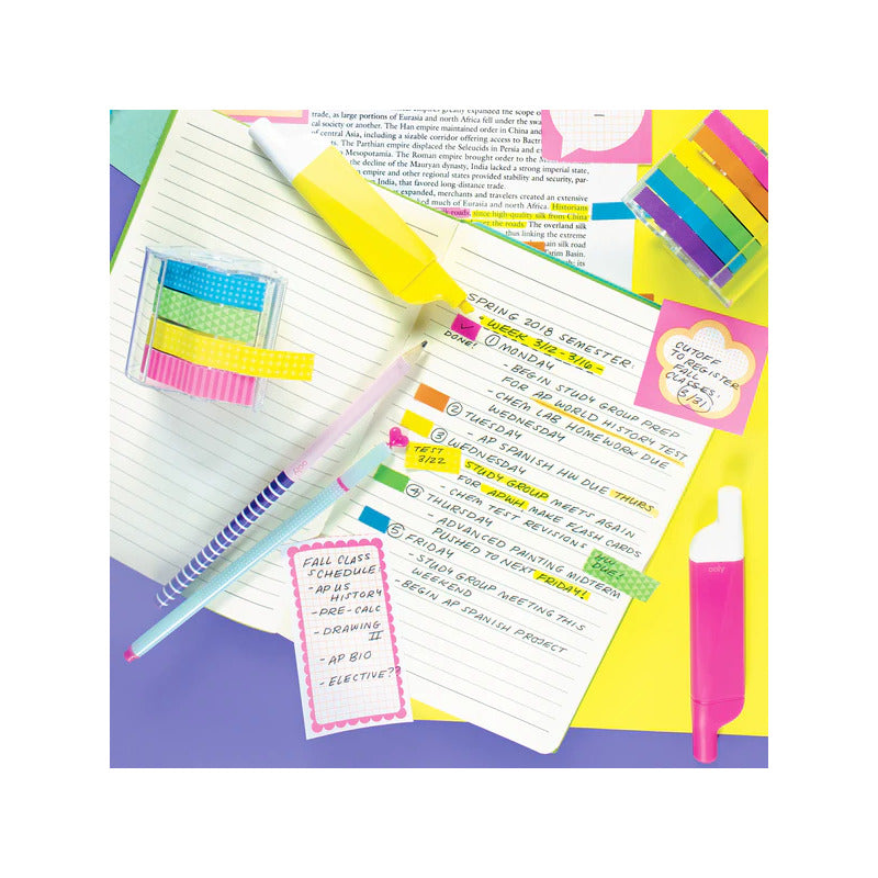 ¡Vive sin miedo con los resaltadores borrables Do-Overs! Este set de seis llamativos colores neón te permite resaltar información importante para consultarla rápidamente más tarde, y la tinta BORRABLE te permite cometer errores sin preocupaciones.