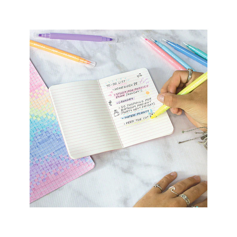 Los Pastel Liners son un set de 8 rotuladores pastel con doble punta. Un extremo tiene una punta biselada de 5 mm, ideal para usar como resaltador pastel. El otro extremo es un marcador de punta fina de 3 mm para dibujar, colorear y escribir en hermosos colores pastel.