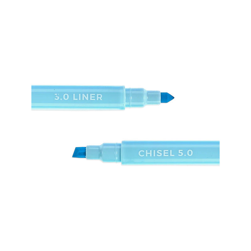 - Marcadores de punta doble: use la punta biselada de 5 mm como resaltador o la punta fina de 3 mm como marcador pastel.