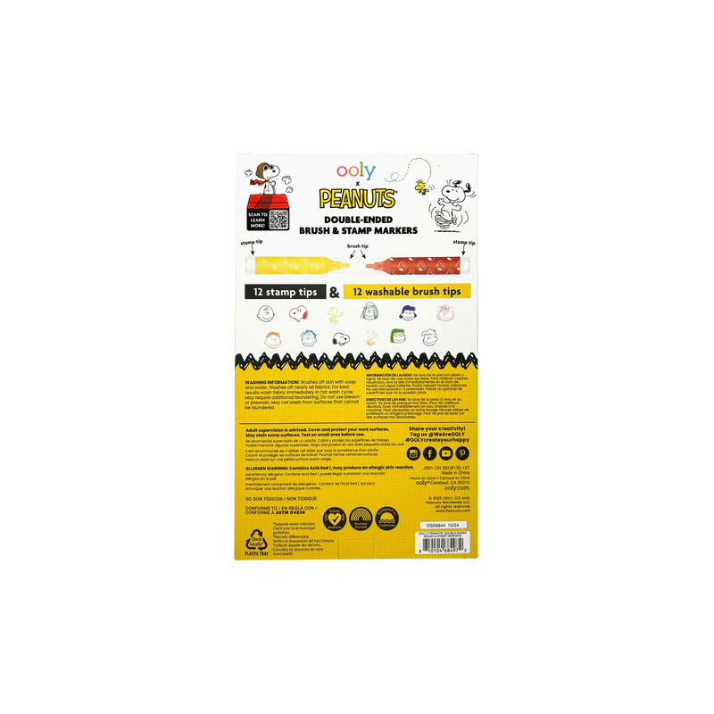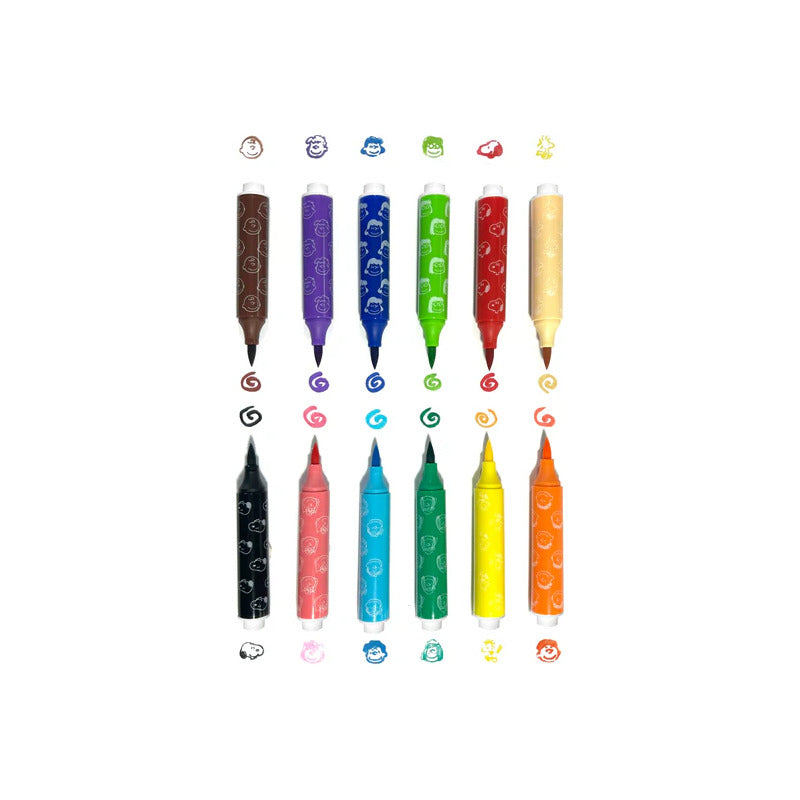 Ooly X Peanuts - Snoopy: 12pk Marcadores Doble Punta (Punta de Pincel + Punta de Sellos)
