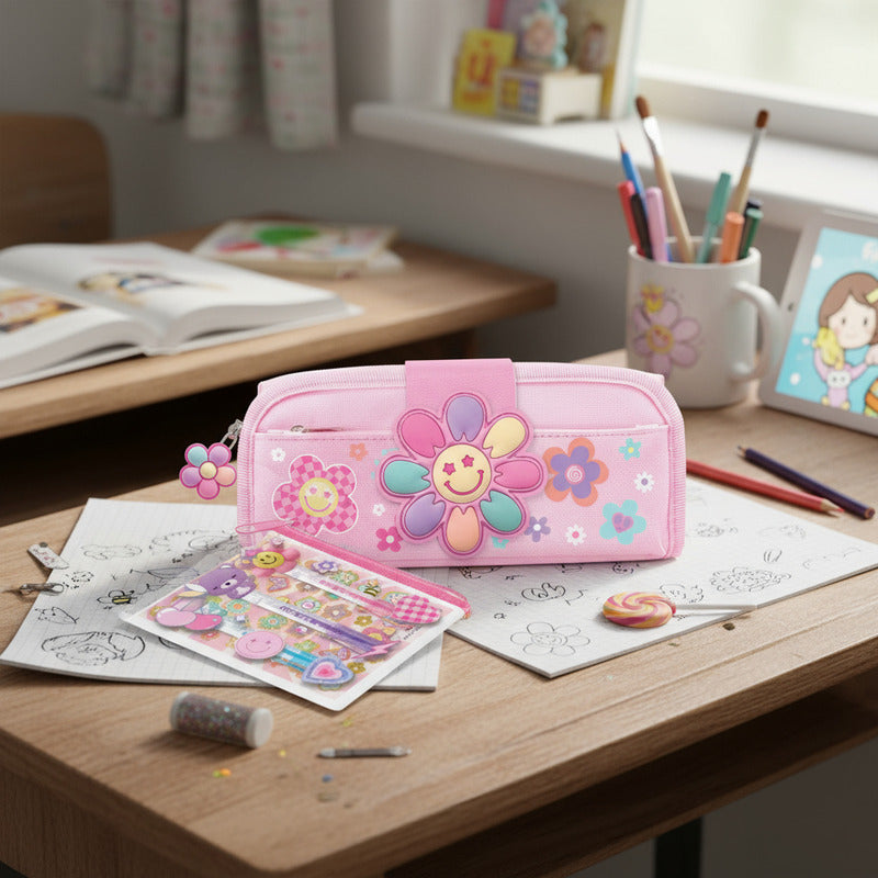 Hot Focus - Groovy Flower: Cartucheras + 3 Bolígrafos