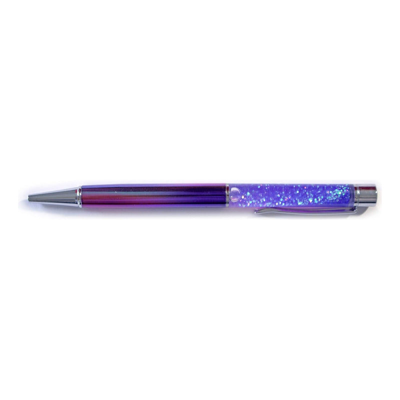 Este impresionante bolígrafo es elegante y lujoso, con un acabado metálico plateado y una cámara llena de brillo plateado líquido que se mueve con la gravedad.