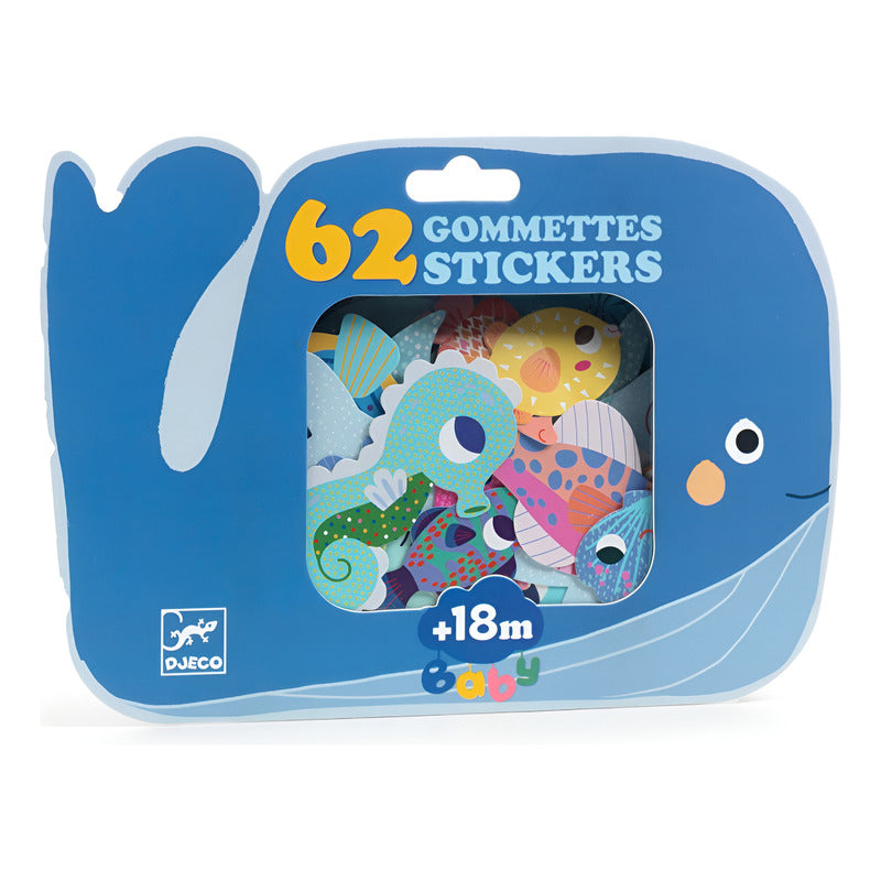 Djeco - Kit Calcomanías Para Bebés: Animales Marinos (62 Pzas)