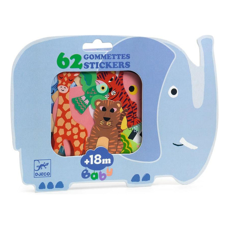 Djeco - Kit Calcomanías Para Bebés: Safari (62 Pzas)