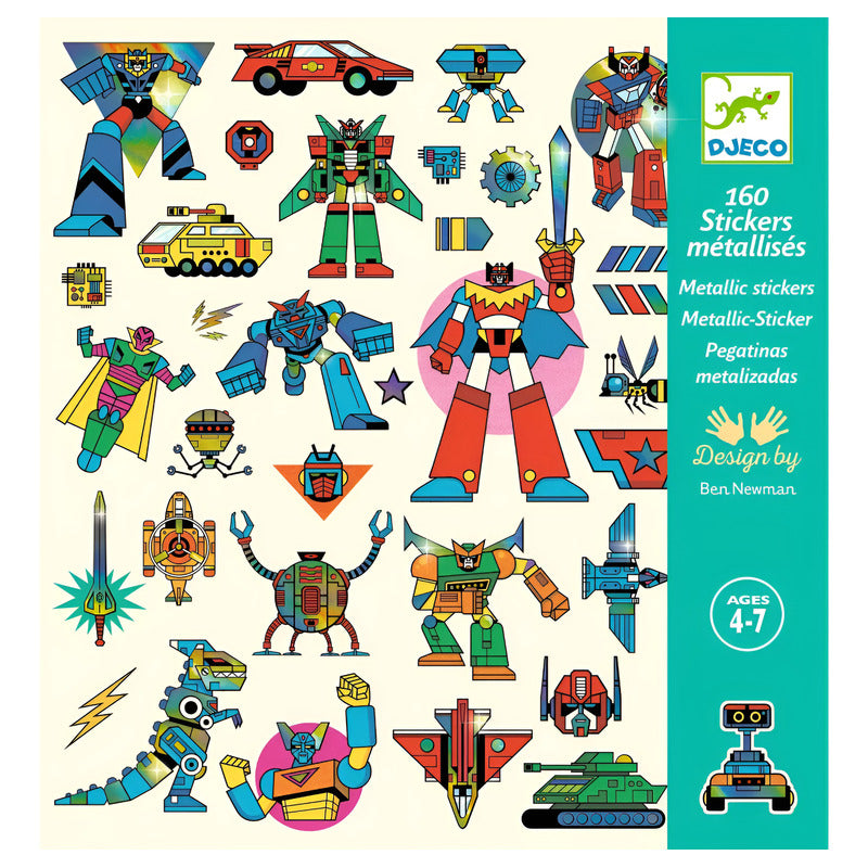 Djeco - Kit Calcomanías: Robots (Metalizados +160 Pzas)