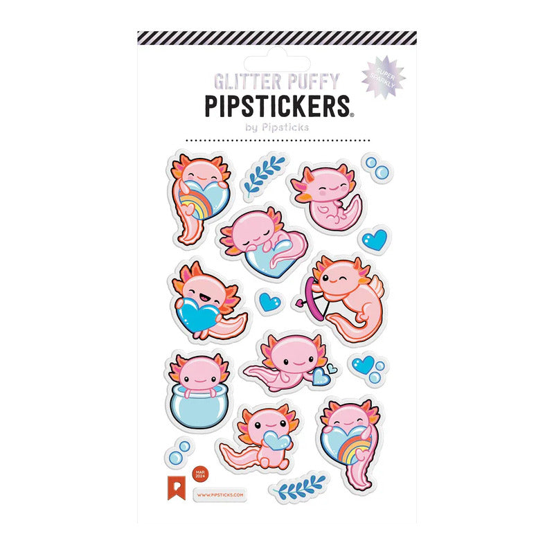 Pipsticks - Calcomanías Puffy Axolotl Fun (Detalles Escarchados - Grosor 2mm)