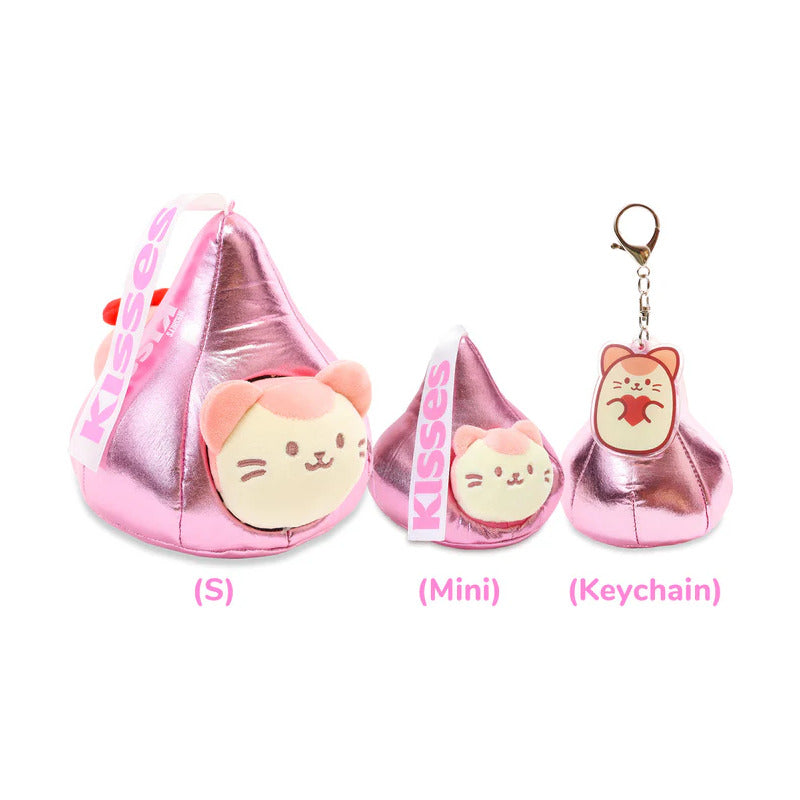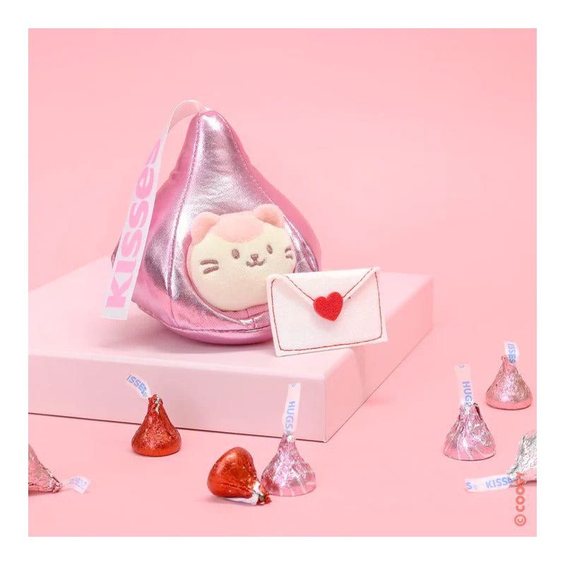 Peluche de gatito kawaii con besos de chocolate rosa