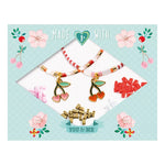 En una bonita caja brillante, un surtido de cuentas y charms de cerezas para crear dos pulseras en colores veraniegos.