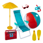 ¡Es hora de tomar el sol y sumergirse en la aventura con accesorios para relajarse y jugar! Tu elfo estará listo para golpear la arena y relajarse con estilo con estos elementos esenciales de playa del tamaño de un elfo. ¡Este kit oficial de elfo es sinónimo de diversión festiva bajo el sol!