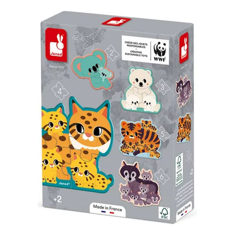 Janod - WWF®: Rompecabezas Progresivo 5-En-1 Animales (2 - 3 Años)