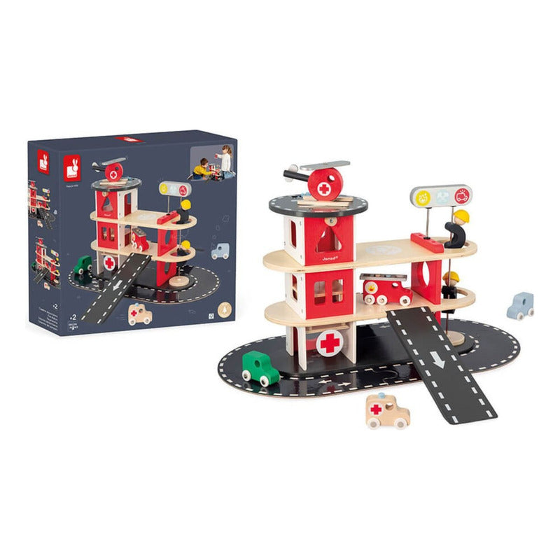 Janod - Estación Bomberos De Madera + 5 Vehículos