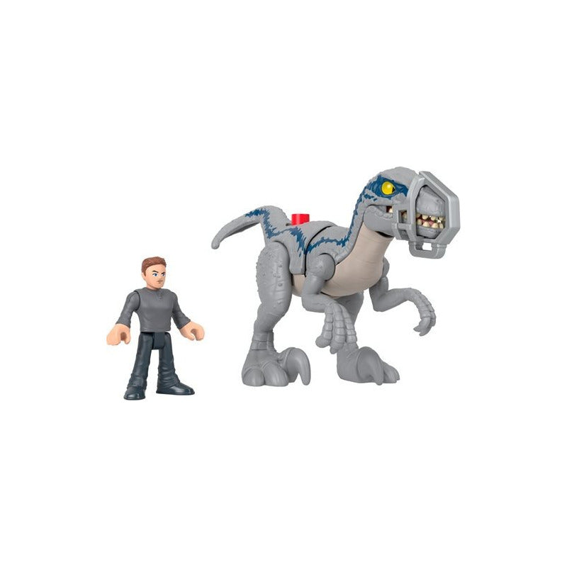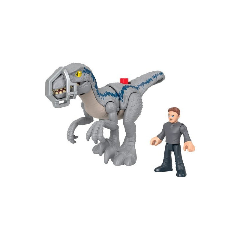 Pero cuidado, ¡este feroz dinosaurio puede liberarse por sí solo con una increíble acción de golpes activada por niños! Este set de figuras de acción XL de Jurassic World Imaginext Breakout 'Blue' incluye 1x figura azul, 1x figura de Owen Grady y un arnés extraíble.