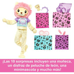 INCLUYE: muñeca con disfraz de animal y 10 sorpresas. (Los colores y las decoraciones pueden variar).