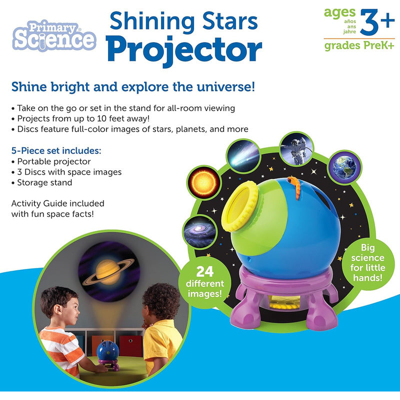 EXPLORAR: Causa y efecto, desarrollo del lenguaje Los jóvenes astrónomos pueden explorar los inicios de la ciencia espacial proyectando imágenes del espacio a cualquier superficie para obtener una vista de cerca de estrellas, planetas y mucho más. Proyecta estrellas, planetas, paseos espaciales y mucho más, tan grande como tu habitación lo permita