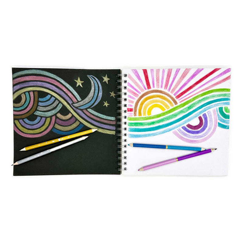 ¡Nuestro cuaderno de bocetos en blanco y negro funciona perfectamente con nuestros lápices de colores y metálicos!