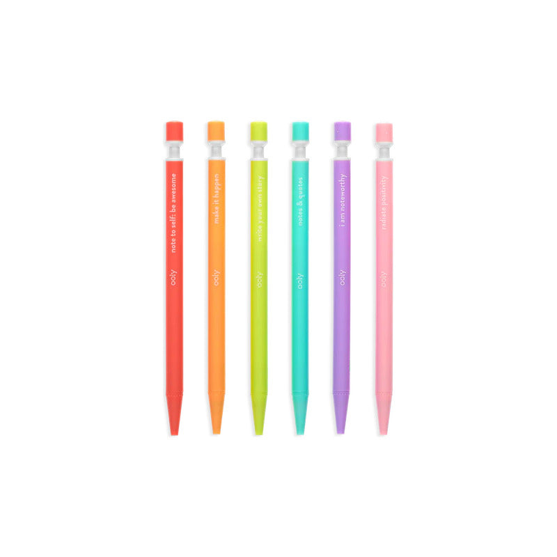 Cada uno de estos 6 portaminas tiene su propio mensaje inspirador. ¡Los portaminas mecánicas de grafito Noted! están listos para usar o divertirse!