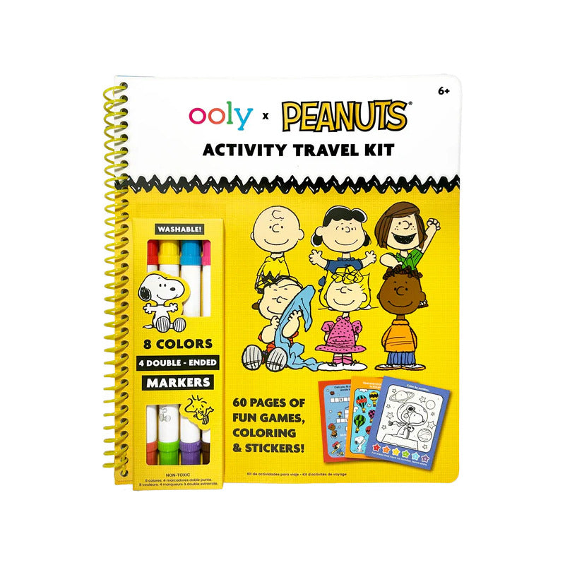 Con un libro de actividades de 60 páginas repleto de rompecabezas, juegos y hojas para colorear, este kit de viaje es perfecto para los niños que adoran las aventuras de la pandilla de Peanuts.