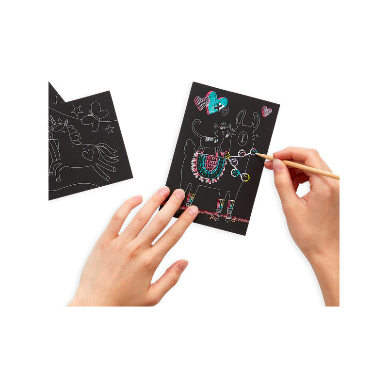 ¡Anímate a rascar porque te esperan aventuras con animales! Estas divertidas tarjetas para rascar con temática de amigos están repletas de instrucciones fáciles de seguir para revelar las ilustraciones de arcoíris inspiradas en animales, como unicornios, llamas, perezosos y más. Con un tamaño de 10 x 15 cm para divertirse en cualquier lugar, estos mini kits de rascar para niños son ideales para viajar.