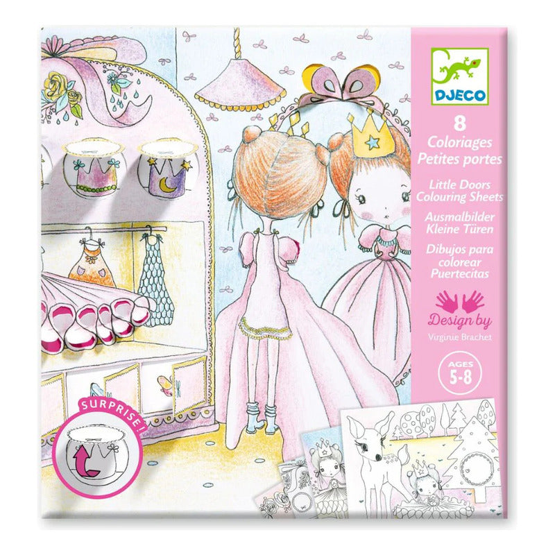Djeco - Tarjetas Para Colorear: Pupi's Little Doors (8 Pzas)