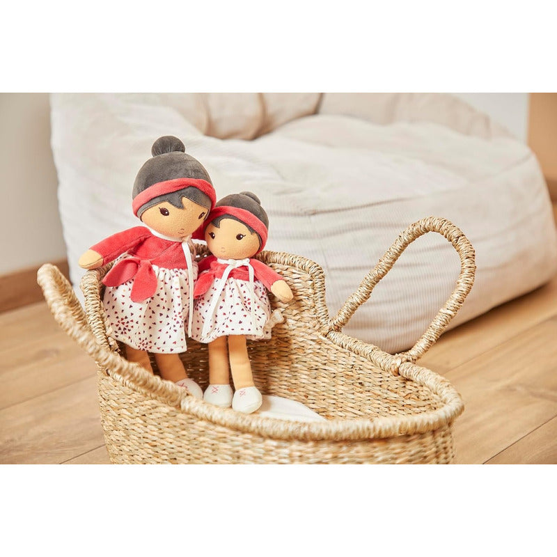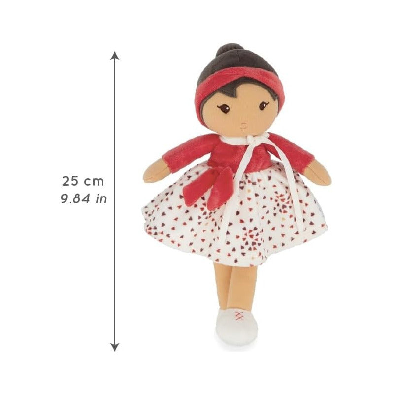 ¡Qué romántico! Conoce a Émilie, una encantadora muñeca de tela, en su tamaño de 25 cm. Apta para bebés desde el nacimiento, forma parte de la colección de muñecas Tendresse de Kaloo.